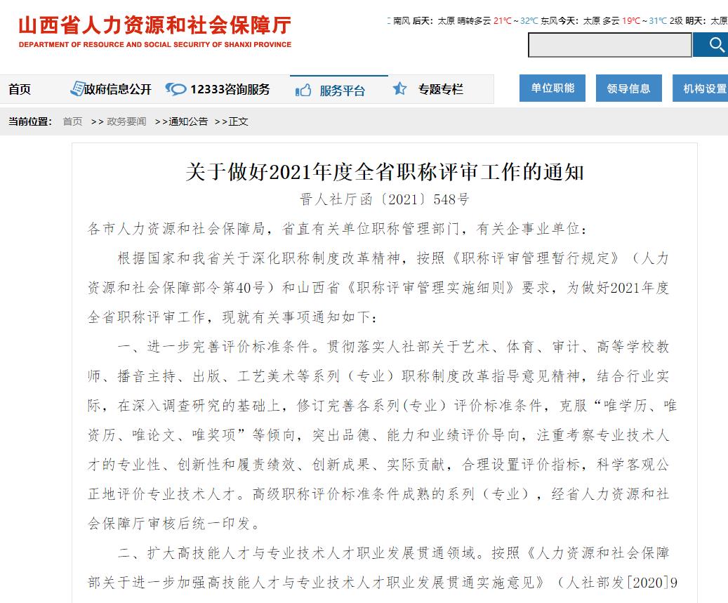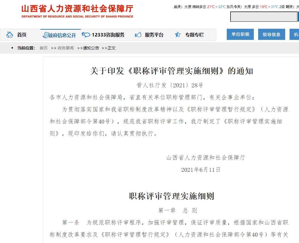 關(guān)于印發(fā)《職稱評審管理實施細則》的通知 晉人社廳發(fā)〔2021〕28號